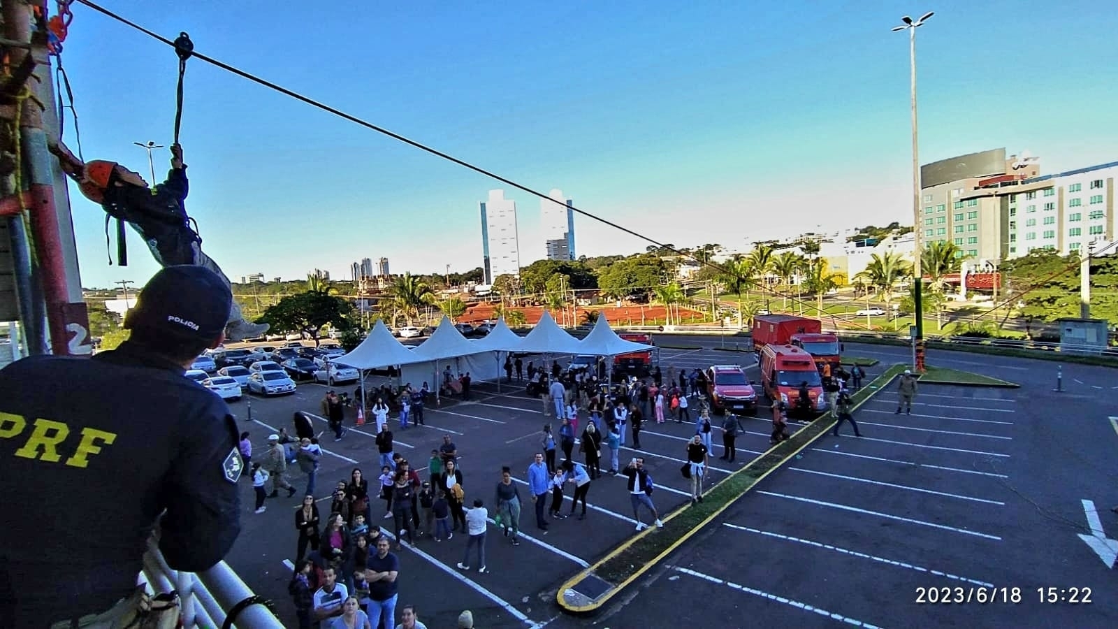 Tirolesa monitorada pelos bombeiros, exposição de motos e de uma porche da PRF, brincadeiras e distribuição de panfletos com informações marcaram a tarde de atividades que tinha um propósito: divulgar informações sobre TEA.