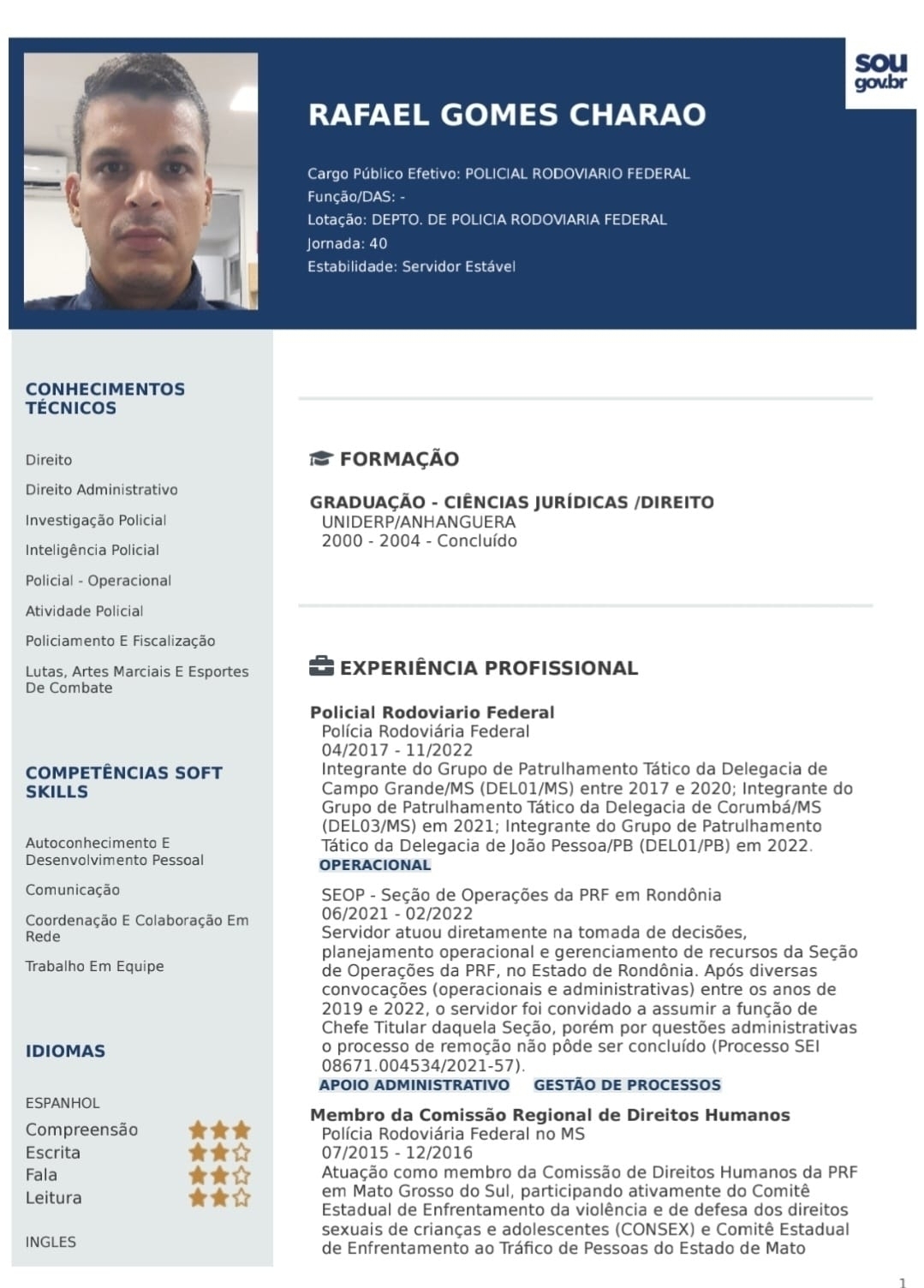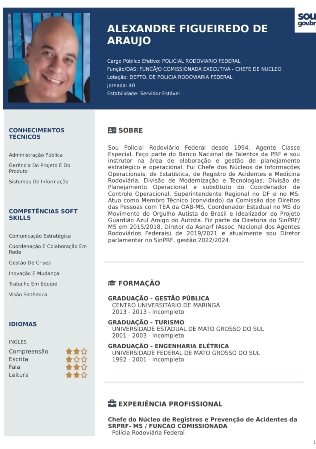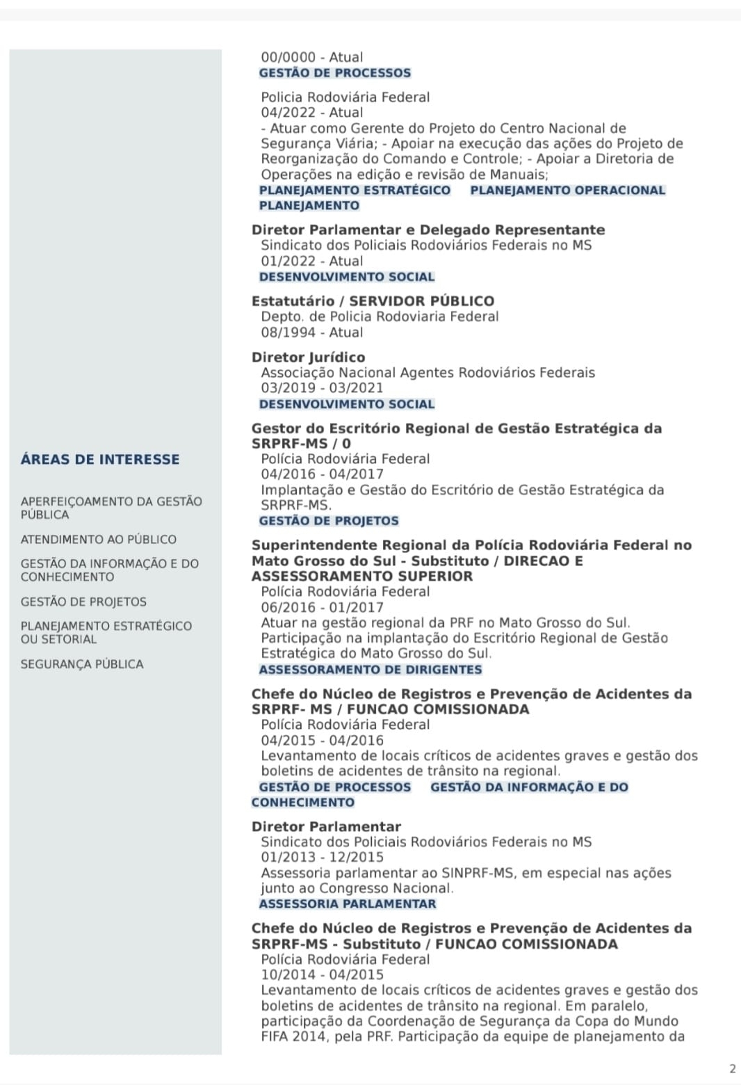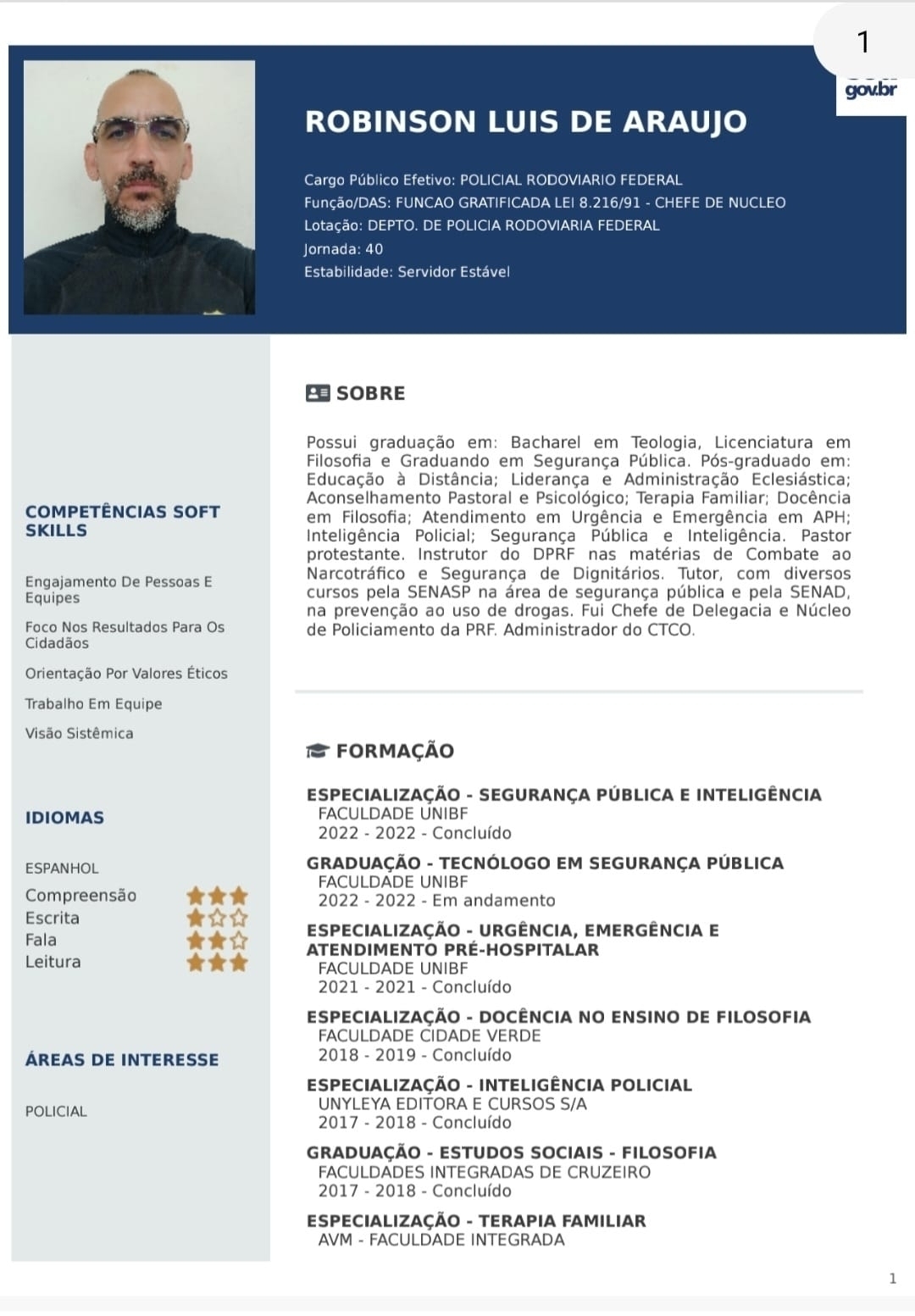 *O PRF Robinson tem um currículo de 21 páginas e nesta matéria consta até a página 14 pois o arquivo ultrapassa o número de imagens permitida pelo site em uma única matéria.